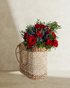 This arrangement contains 6 Red Roses, 3 Red Spray Roses, 3 Eryngium,Pistachia set in Basket.