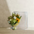 This arrangement contains Lisianthus - 1, Hydrangea -1, Solidago -5, Sunflower-1, Pistacia ,Craspedia- 4 set in a bag.