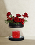 Red flower arrangement + Small heartshape cake; 500gr; taste: red velvet.